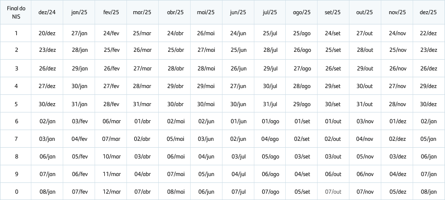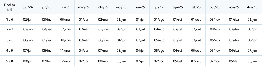 💰 Beneficiários que recebem até um salário mínimo (R$ 1.518 em 2025): os pagamentos são feitos nos últimos cinco dias úteis do mês e nos cinco primeiros dias úteis do mês seguinte.